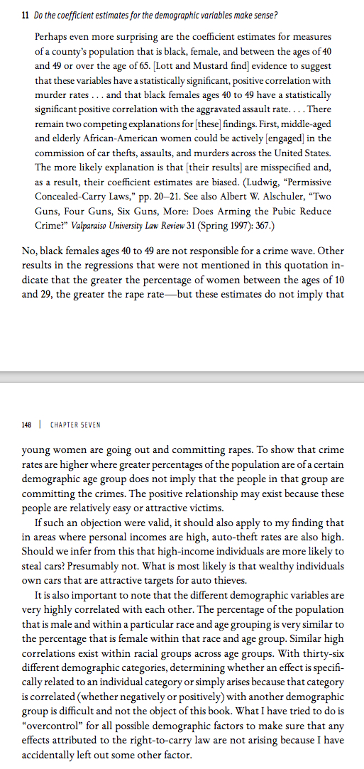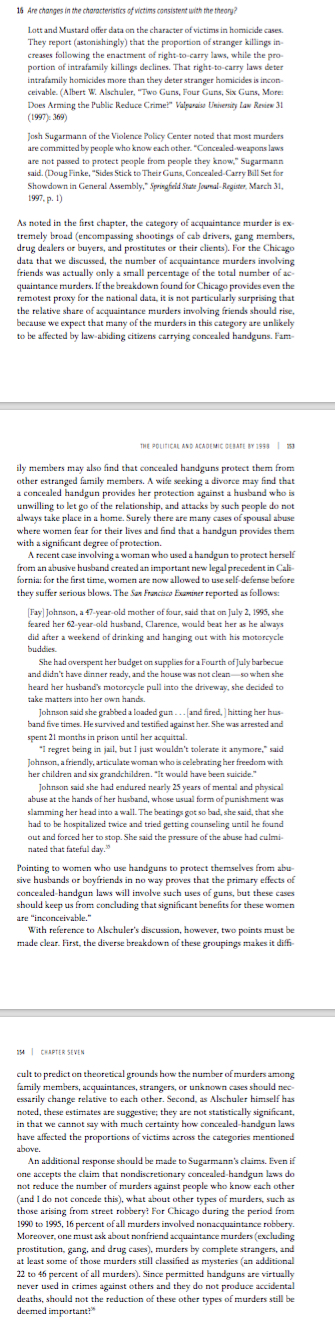 As Albert Alschuler explains in “Two Guns, Four Guns, Six Guns, More Guns: Does Arming the Public Reduce Crime,” Lott’s work is filled with bizarre results that are inconsistent with established facts in criminology. . . .