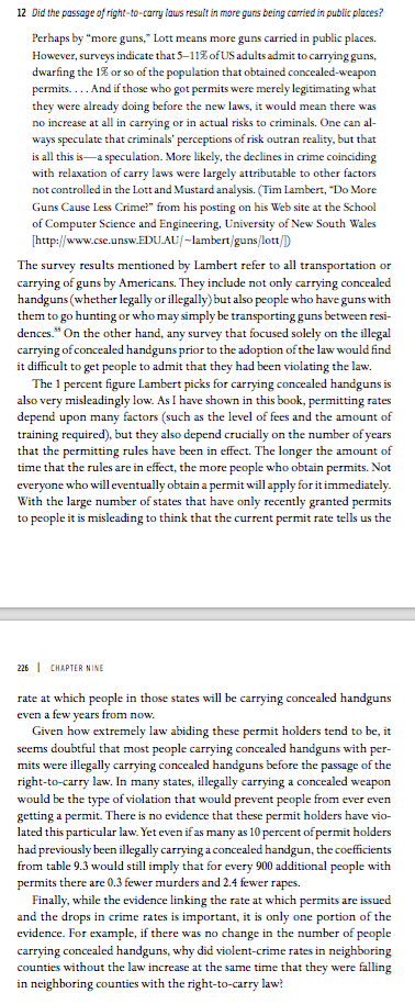 It’s extremely unlikely, therefore, for the 1% of the population identified by Lott who obtained concealed carry permits after the passage of “shall-issue” laws to be responsible for all the crime decrease.