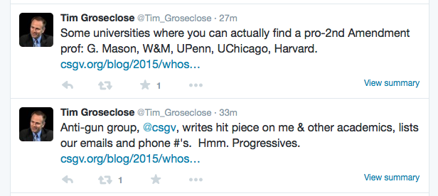 George Mason University Professor Tim Groseclose posted these tweets in response to the CSGV: