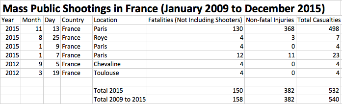 UPDATED: France had more casualties from mass public shootings in 2015 than the US suffered during Obama’s entire presidency (532 to 527)