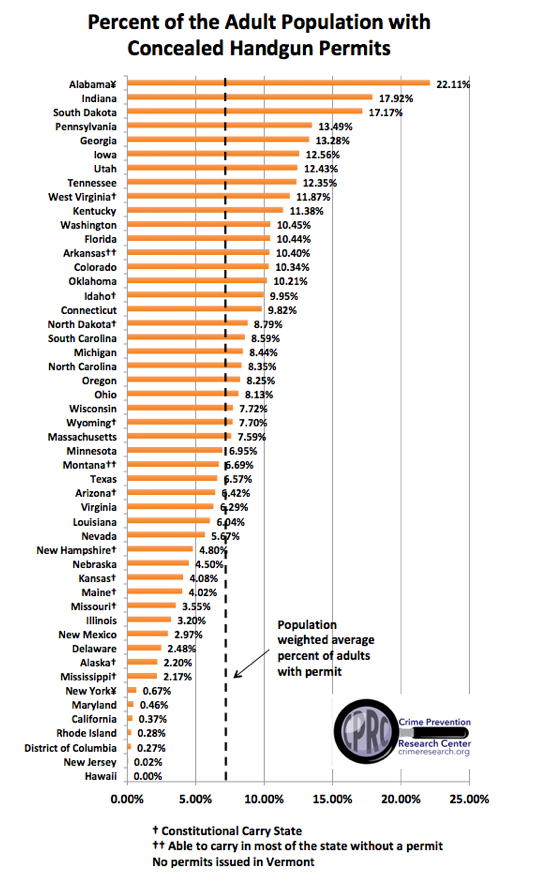 - In fifteen states, more than 10% of adults have permits, up from just eleven last year.