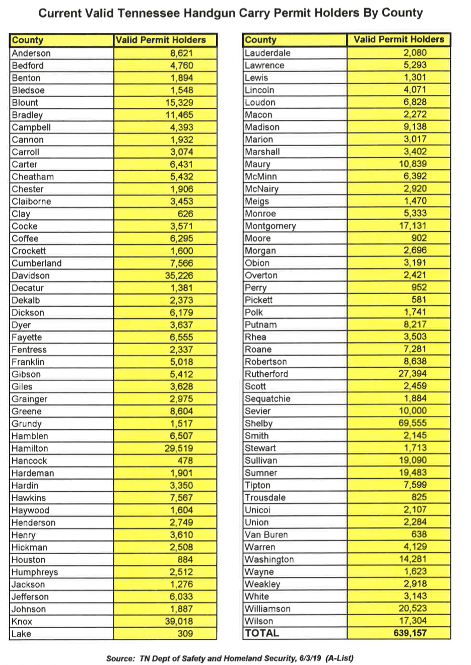 Tennessee; there were 618,752 permits on June 1st, 2018 and there were 639,157 on June 3rd, 2019, an increase of almost 21,000.