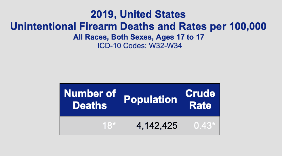 Suppose that you even looked at everyone under 18.For everyone under 18 in 2019, the CDC shows that there were homicides of 938, accidental deaths of 88, and suicides of 657 for a total of 1,638. Short of the 3,044 that they claim for just the graduating high school class. For 17 year olds, the total was 548. The homicide numbers here are inflated because they include justifiable homicides. Overwhelmingly gang related violence. Background checks are as likely to stop those people from getting guns as pharmacists checking IDs stops people from buying illegal drugs.