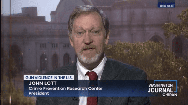 Dr. John Lott was interviewed on C-SPAN’s Washington Journal by Jesse Holland about gun violence in the U.S.. They start off talking about the elaborate hoax by a gun-control organization that set up a fake high school graduation for Lott to give the keynote commencement address. Few Americans seem to realize that less than 10 percent of violent crimes involve the use of firearms.