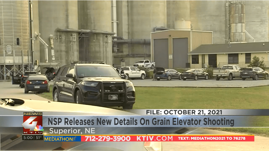 Dean Welte, “Nebraska authorities say fatal grain elevator shooting in Superior lasted about 20 seconds,” KTIV.com, November 10, 2021.