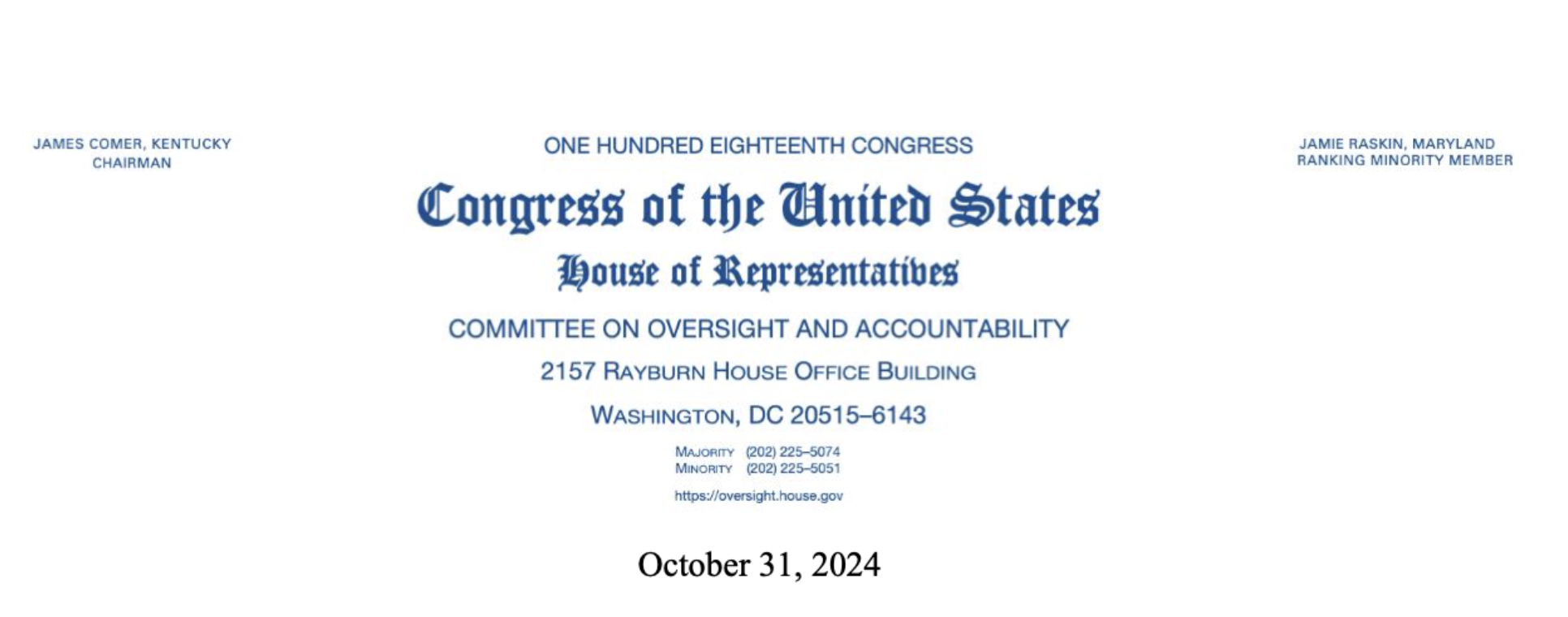 Here is Rep. James Comer’s letter: