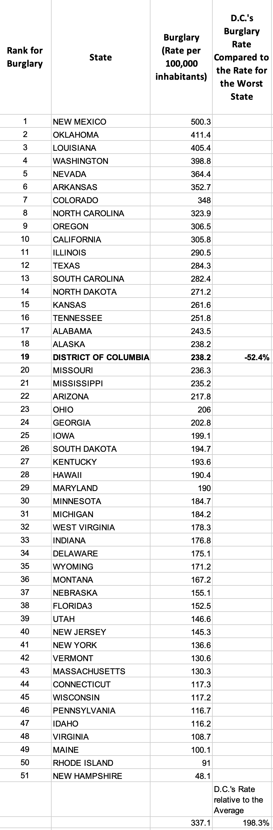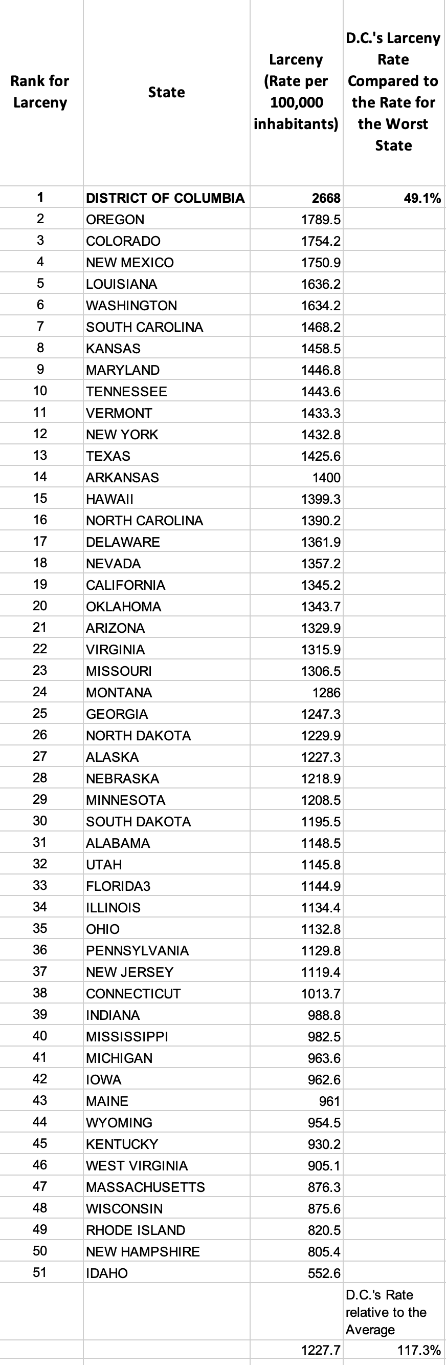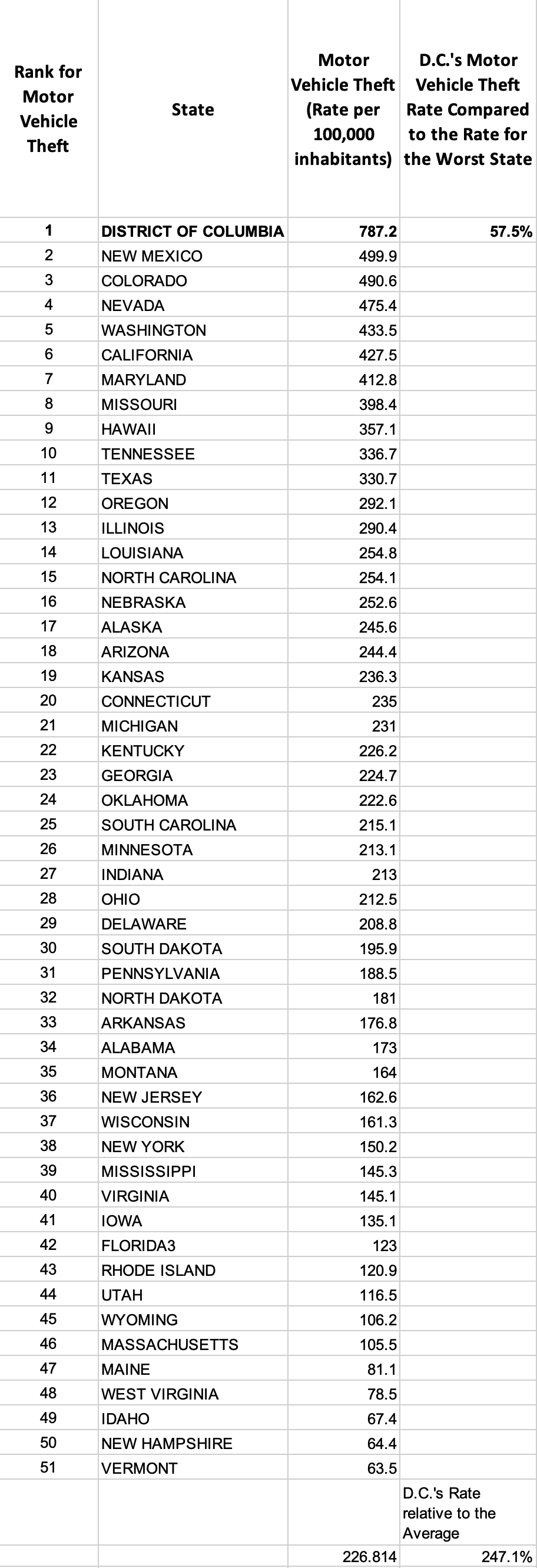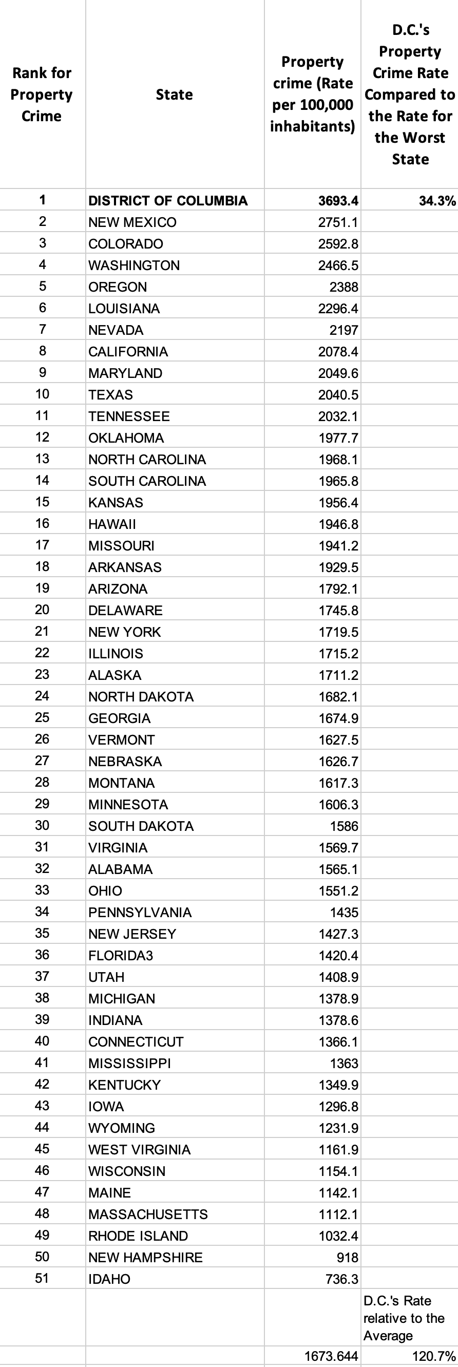 — D.C.’s property crime rate is 34% higher than the highest state, New Mexico. It is 121% higher than the average.