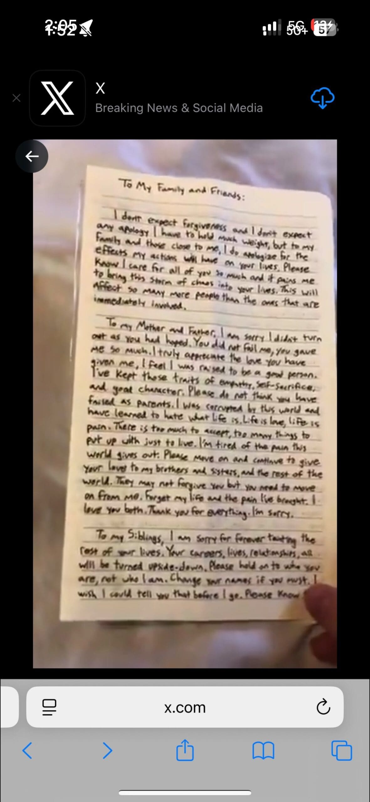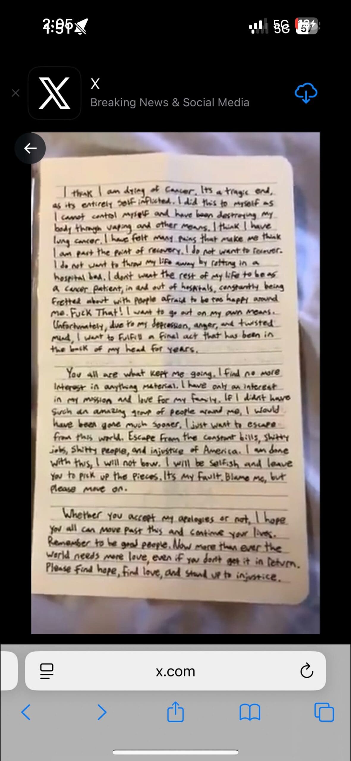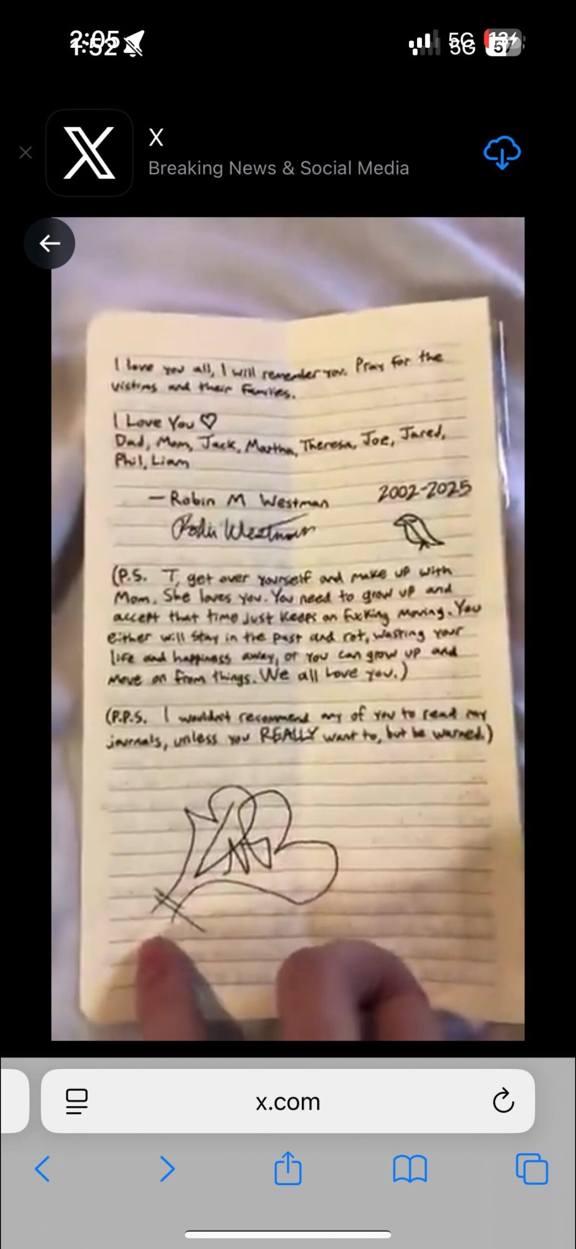 Here is the note that the murdered left. The name of the alleged murdered is Robin Westman, and he is apparently a transgender individual, a man who pretended that he was a woman.