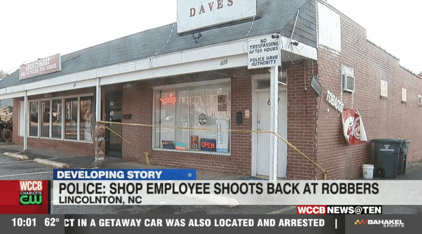 Morgan Fogarty, “Lincolnton Police: Shop employee shoots at robbers,” WCCB Charlotte, February 6, 2025.