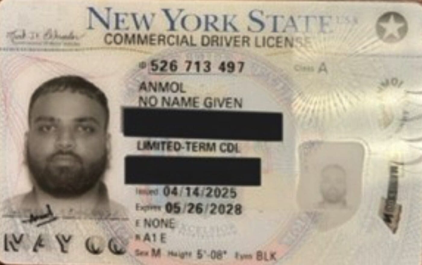 There have recent stories of illegal aliens driving semi-tractor trailers across the country. On August 12, 2025, Harjinder Singh, an illegal alien from India, was driving a semi-tractor trailer on the Florida Turnpike, and he attempted an illegal U-turn in a restricted area. His trailer crossed multiple northbound travel lanes, and a minivan collided with his trailer. Three occupants of the minivan died. New York issued a commercial driver’s license to “No Name Given Anmol.” On September 23, 2025, the Oklahoma Highway Patrol encountered Anmol during a routine inspection at a truck scale. Nineteen states, including California, New York, and the District of Columbia, issue licenses regardless of immigration status.