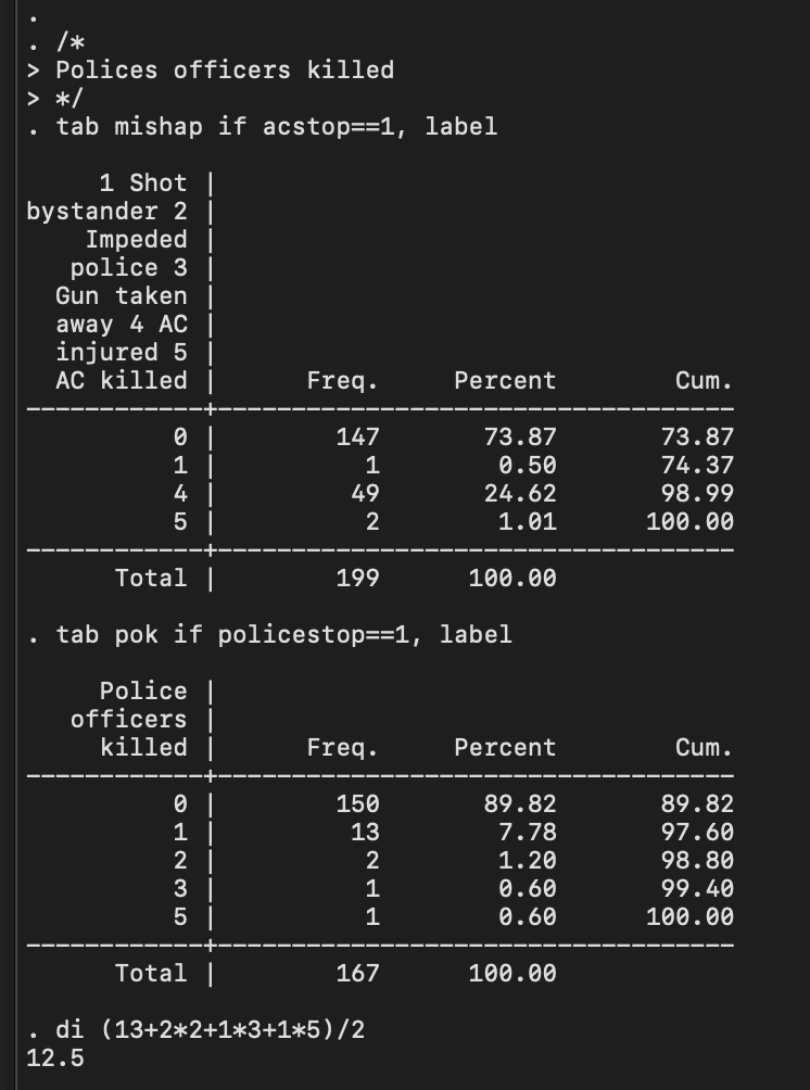 Comparing police officers and civilians killed in stopping these attacks. Police killed at 12.5 times the rate of civilians.