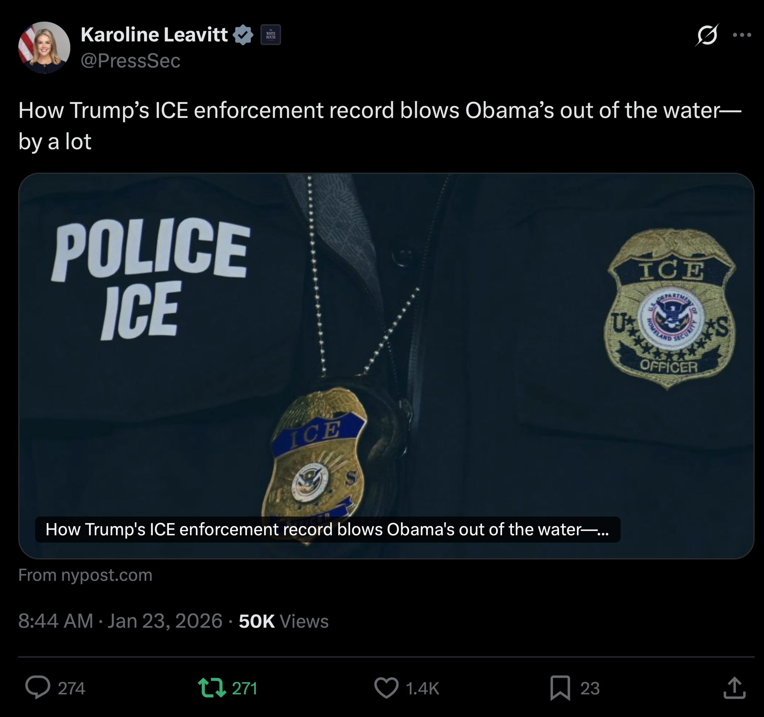White House Press Secretary Karoline Leavitt Again Posts Another of Our Op-eds, this one from the New York Post on Trump’s ICE enforcement record