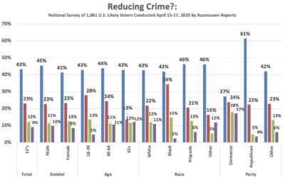 The latest Rasmussen Reports national telephone and online survey asked likely voters from April 15to 17th: "You cannot just free the criminals and think crime is going to go down magically, you have to imprison [criminals] so you can liberate 350 million Americans...